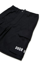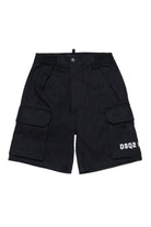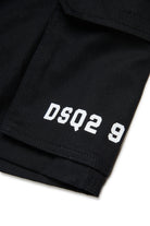DSQ2ロゴ入りカーゴショーツ。実用的で機能的なデザインが特徴で、大きなサイドポケットが付いています。
