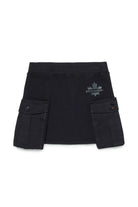 フリース素材のミニスカート。カーゴスタイルのサイドポケットが裾に向かって広がり、独創的なボリューム感を演出。フロントのトーンオントーンのDsquared22メープルリーフロゴがアイコニックなアクセントを添えています。