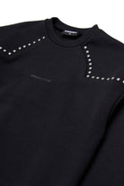 ゴム引きのDsquared22ロゴをフロントにあしらった長袖クルーネックスウェットシャツ。縫い目に沿って施されたスタッズが大胆で都会的なタッチを加え、力強くもバランスの取れたルックを演出。