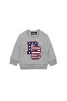 長袖クルーネックスウェットシャツ。フロントにコントラストカラーのD2 USAカレッジ風プリント。肩に実用的なボタン留め。クルーネック、袖口と裾にリブ編み。コットン100%製。