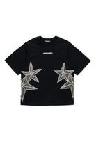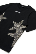 コットンジャージー素材の半袖クルーネックTシャツです。手仕上げのクリスタルをあしらったメッシュの星が特徴です。フロントにコントラストカラーのDsquared2ロゴ入り。