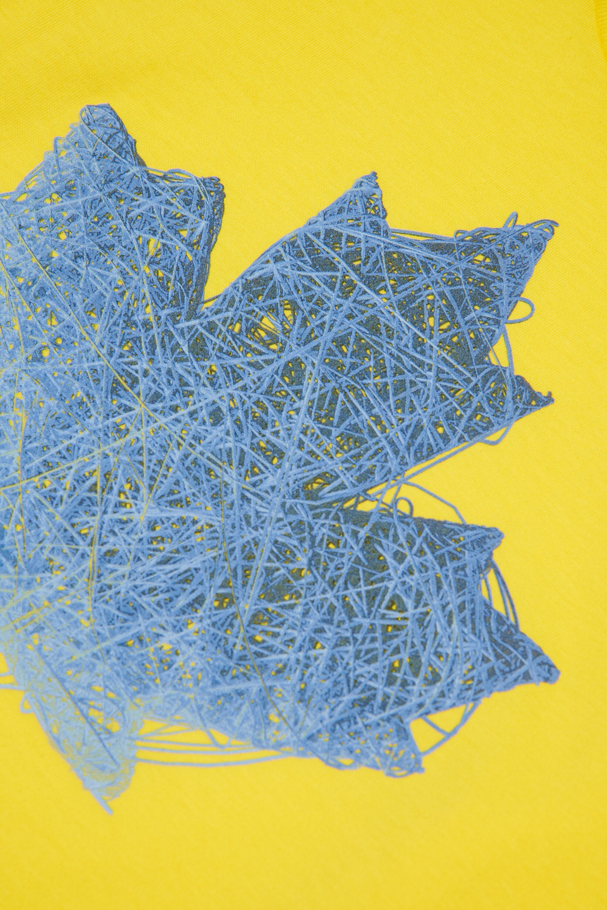フロントに立体的なロゴと大きなカエデの葉をあしらった、100%コットンのTシャツ。コーディネートに個性をプラスするのに最適な一枚です。