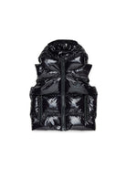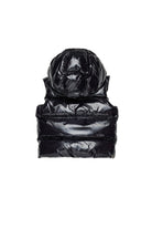 光沢のあるフード付き中わたベスト。メープルリーフのロゴがラバーで施され、ブランドのカナダらしさを表現している。カジュアルな装いにスタイルのアクセントを加えるのに最適。
