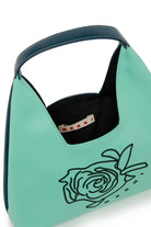 ロゴとフラワー刺繍が施されたダイヤモンドショルダーバッグ。モダンなラインが特徴で、どんなコーディネートにも個性的なアクセントをプラスします。