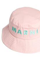 ギャバジン生地のフィッシャーマンハット。フロントにコントラストカラーで刺繍されたインスティテューショナルロゴが特徴。コットン100%製。 サイズI:全幅48cm。サイズII:総幅50cm。サイズIII:総幅52cm。