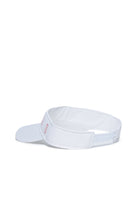 ギャバジン生地バイザー。フロントにコントラストカラーのMarni Outlineロゴ。コットン100%製。後ろは調節可能なベルクロ開閉式。 サイズI:総幅52cm。サイズ II: 総幅54cm。サイズ III: 総幅 56 cm.