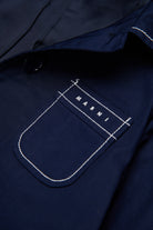 ロゴとコントラストの効いたトリミングが特徴のジャケット。目立つステッチとフロントに配されたパッチポケットが際立ちます。
