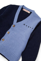 ウール混の長袖ニットカーディガン。特徴的なカラーブロックがオーセンティックでモダンな個性を演出。Marniのロゴがデザインを引き締め、さまざまなシーンで活躍します。