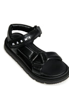 モダンなデザインのプラットフォームサンダルです。ベルトにはコントラストカラーでインスティテューショナルロゴがプリントされています。ソールは熱可塑性ラバー製。イタリア製。