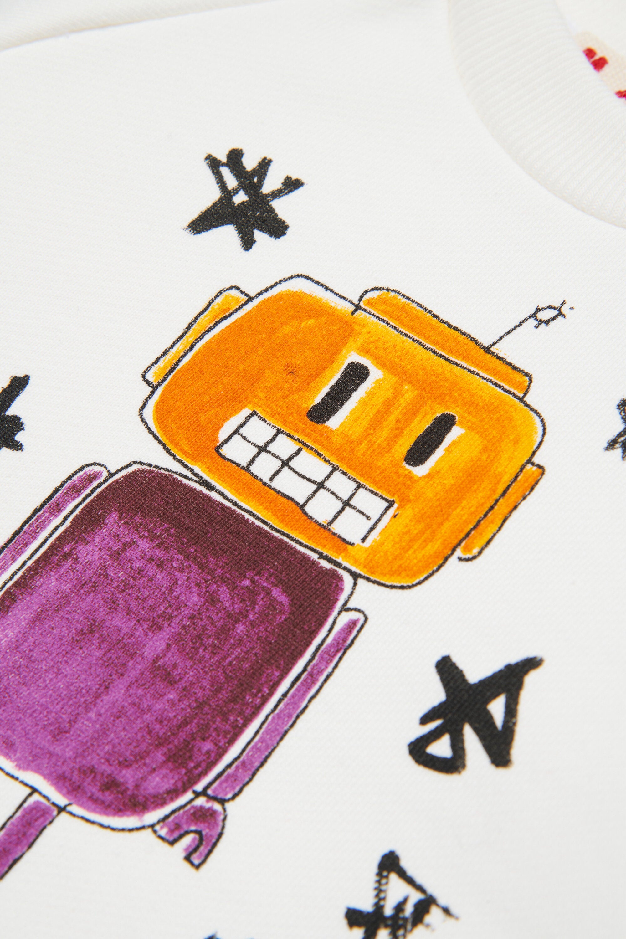 ロボットをテーマにしたギャラクシーのグラフィックをフロントに配し、組織ロゴをあしらった長袖クルーネックスウェットシャツ。コントラストカラーのボトムが、この遊び心のある現代的なスピリットのウェアに生き生きとしたタッチを加えています。