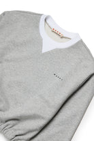 胸元にロゴ入り、襟元にコントラストの効いたディテールが特徴のクルーネックスウェット。