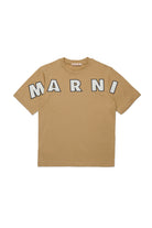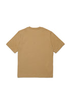 半袖クルーネックジャージーTシャツ。フロントにインスティテューショナルなロゴをあしらい、袖にはコントラストカラーの刺繍があしらわれています。綿100%で作られています。合わせやすいカジュアルなオプション。