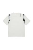 ソフトなコットン・ジャージーの半袖Tシャツで、アームホールに配色のリブストライプがあしらわれています。ショルダーに刺繍されたハンドメイドのMarni・ロゴが、オーセンティックなアクセントを添えています。