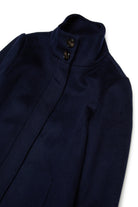 Aシェイプの長袖ウール混コート。フレアシルエットとミニマルなデザインが、寒い日にぴったりの実用的で洗練された一着。高めの襟は体を保護し、スタイルにアクセントを加える。