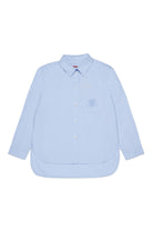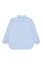 コットンポプリンの長袖バリ・シャツ。モダンなカットとアシンメトリーなボトムが特徴のMAX&Co.モデル。どんなシーンにも合わせやすいマストアイテム。