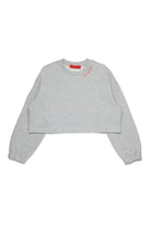 ロゴ入りクロップドクルーネックスウェット。長袖と伸縮性のあるカフスが特徴のモデルです。