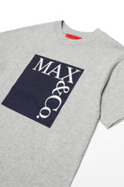 柔らかなコットン・ジャージー製の半袖Tシャツ。ロゴが主役のブランドを象徴する一着で、生地のメランジ調の質感が強調されている。