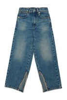 ミディアムブルーのスプリット入りレギュラージーンズ