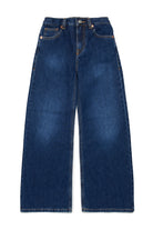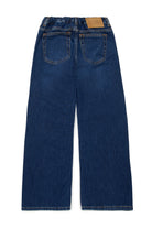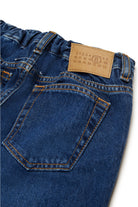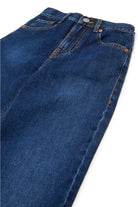フレアフィットの5ポケットジーンズ。ミディアムブルーのデニムにコントラストカラーのグラデーション。背中にアイコニックな縫い目。コットン100%製。
