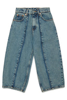ミディアムブルーのバルーン・エフェクト・リラックス・ジーンズ