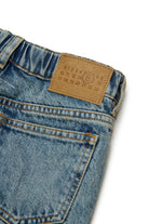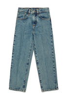 フッテージ付きミディアム・ブルー・スリム・ジーンズ