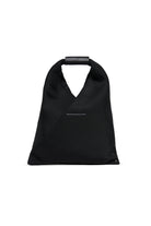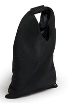 小さなメッシュの日本製バッグ。三角形のシルエットと、端にボタンがあってバッグを折りたたむことで形を変えられる特徴があり、フレンチメゾンの美的規範を明確に反映しています。袖には数字のロゴが入ったレザーパーツが特徴です。これはMM6の最も象徴的なアクセサリーであり、アダルトコレクションから選ばれています。