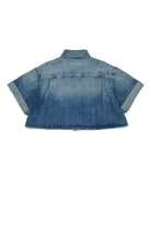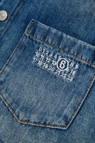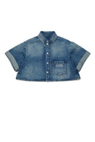 ロゴ入りのデニムシャツ、胸元にパッチポケット付き。リラックスしたシルエットと半袖で、カジュアルかつコンテンポラリーなスタイルに最適です。