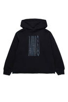 長袖フード付きスウェットシャツ。フロントにインスティテューショナルロゴがカラートーンでプリントされています。裾はローカット。背中にアイコニックな縫い目。袖口リブ編み。