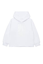 長袖フード付きスウェットシャツ。フロントにインスティテューショナルロゴがカラートーンでプリントされています。裾はローカット。背中にアイコニックな縫い目。袖口リブ編み。