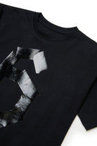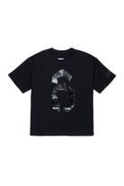 100%コットンのTシャツ、テープ風プリントロゴ入り。背面にはアイコニックなステッチが施されています。