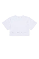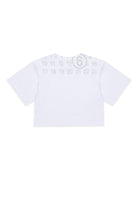 100%コットン製のTシャツ。背面にはアイコニックなナンバリングプリント、コントラストの効いたディテール、クロップド丈のシルエットが特徴です。ブランドの個性を引き立てるコンテンポラリーなデザイン。