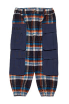 4ポケットカーゴパンツは、足首とウエストの一部に伸縮性があり、快適にフィットします。コントラストの効いたブルーのナイロンポケットが付いたチェックのファブリックベース。