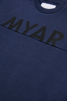 フロントロゴ付きクルーネックスウェット。ストレートラインで、伸縮性のあるカフス付き。