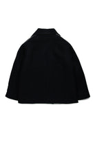 ウール混紡のダブルブレスト・ピーコートで、軽く中わた入り。袖のサイドバンドがスタイリッシュなディテールを添えるモダンなルックスの一着。