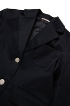 袖にロゴがあしらわれたブレザー。クラシックな2つボタンデザインで、フラップ付きポケットと胸ポケット付き。