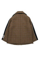 ダブルブレストのハリス・ツイード製ピーコートで、メルトンカラーのパッド入り。リボンのサイドバンドと袖のコントラストカラーのパイピングがモダンなディテールを添えています。再解釈されたクラシックなデザインは、フォーマルなイベントやオケージョンに最適です。