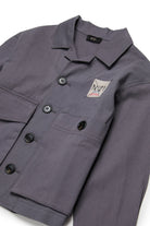 ロゴプリント入りワークウェアジャケット。デザインは、フロントに大きなパッチポケットと際立つステッチが特徴です。