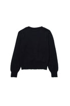 100%コットンのクルーネックプルオーバー。裾にノットのディテール、ハート側にロゴ付き。