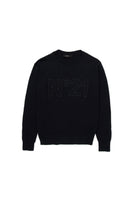 リブ編みの100%コットン製クルーネックプルオーバー、胸元にロゴ付き