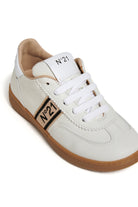 コントラストの効いたロゴがあしらわれたスニーカー。クラシックなシルエットからインスパイアされたモデルで、装飾的なステッチとラバーソールが特徴です。