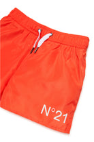 ナイロン製ボクサーコスチューム。ミディ丈。ドローストリングウエスト。フロントにコントラストカラーのN°21インスティテューショナルロゴ。メッシュインナーブリーフ。バックポケット。
