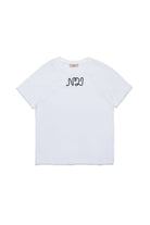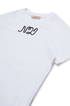 半袖のソフトなコットン・ジャージー製Tシャツ。胸にコントラストカラーのドローストリングであしらわれた筆記体のロゴ「N°21」が、シンプルながら個性的な一着です。