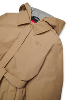 Long trench coat with hooded fleece trim