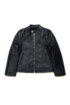 Long-sleeved biker jacket made of genuine leather. Features the iconic raised oval D logo on the front left side. Patches on sleeves. Ribbed insert on the back. Inner diamond quilting. Front zip closure. Zips on pockets and cuffs. A garment with a sporty silhouette, ideal for casual looks.