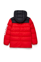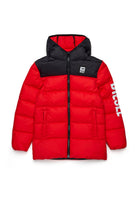 Padded jacket with hood that combines a modern design with essential technical details. The logo on the chest adds a distinctive touch, while the padded structure ensures warmth and freedom of movement.