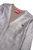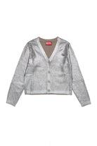 Long-sleeved mylar-print wool-blend cardigan. A garment that combines elegance and modernity, with a shiny finish for a highly distinctive look.