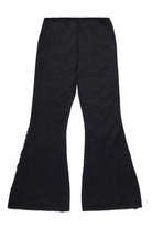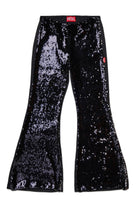 Flare pants with sequins applied to the front. The fabric combination creates a front-back contrast, while the movable sequins give a dynamic effect with every movement. A perfect garment for parties and special occasions.