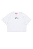 Short-sleeved jersey T-shirt with boxy fit and slightly dropped sleeves for a relaxed, contemporary look. Embroidered Oval D logo outline in contrasting color on chest adds distinctive detail. A versatile garment perfect for any occasion.
