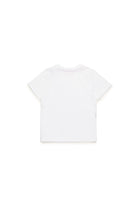 Short-sleeved crew-neck T-shirt in jersey. Features a Diesel Hip Pack trompe-l'oeil print on the front. Practical button closure on the shoulder. Made of 100% cotton.