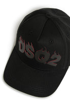 Baseball cap with visor, DSQ2 flame-effect logo, and adjustable back closure. An iconic accessory perfect for completing any look.